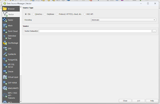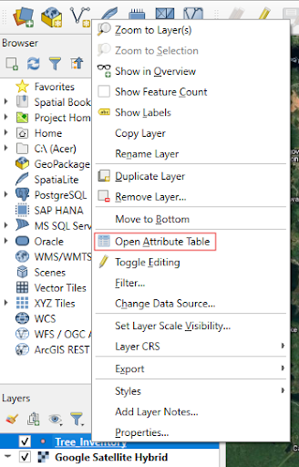 Using “Data Source Manager” on the upper toolbar, add the tree inventory/ward boundary vector shapefile.