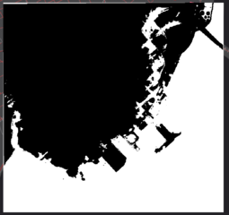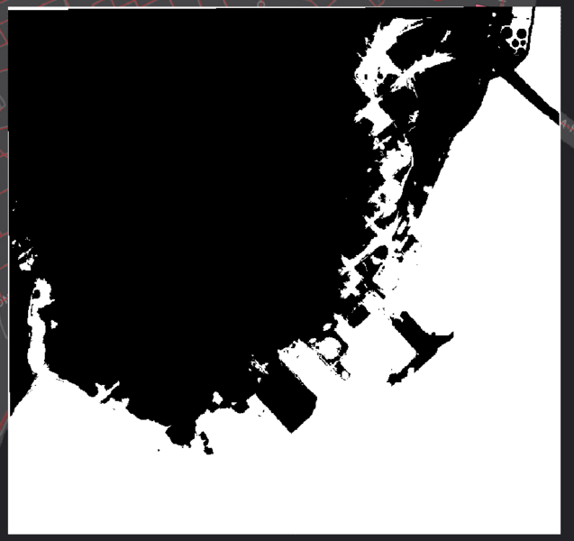 raster calc output where white is sea lvl with a 2m rise in elevation
