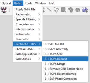 - Click Radar -> Sentinel-1 TOPS -> S-1 TOPS Deburst