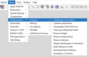 - Click Radar -> Interferometric -> Products -> Interferogram Formation