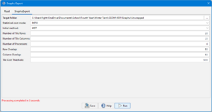 - In the "SnaphuExport" tab be sure to change the target folder, and change the Row Overlap and Column Overlap values to 50