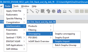 - Click Radar -> Interferometric -> Unwrapping -> Snaphu Import