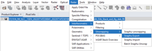 - Click Radar -> Interferometric -> Unwrapping -> Snaphu Export
