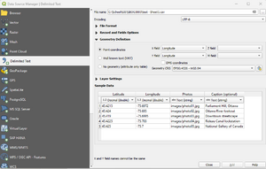 - In QGIS: Layer → Add Layer → Add Delimited Text Layer.